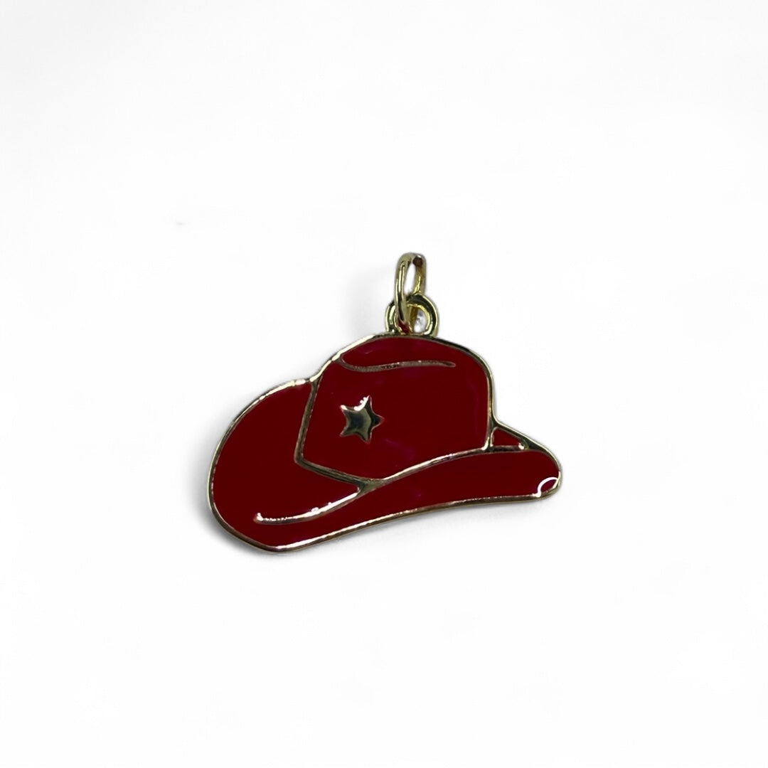 Colgante de sombrero de vaquero occidental en color burdeos, joyería de oro/cobre de 18 quilates bañada en oro.